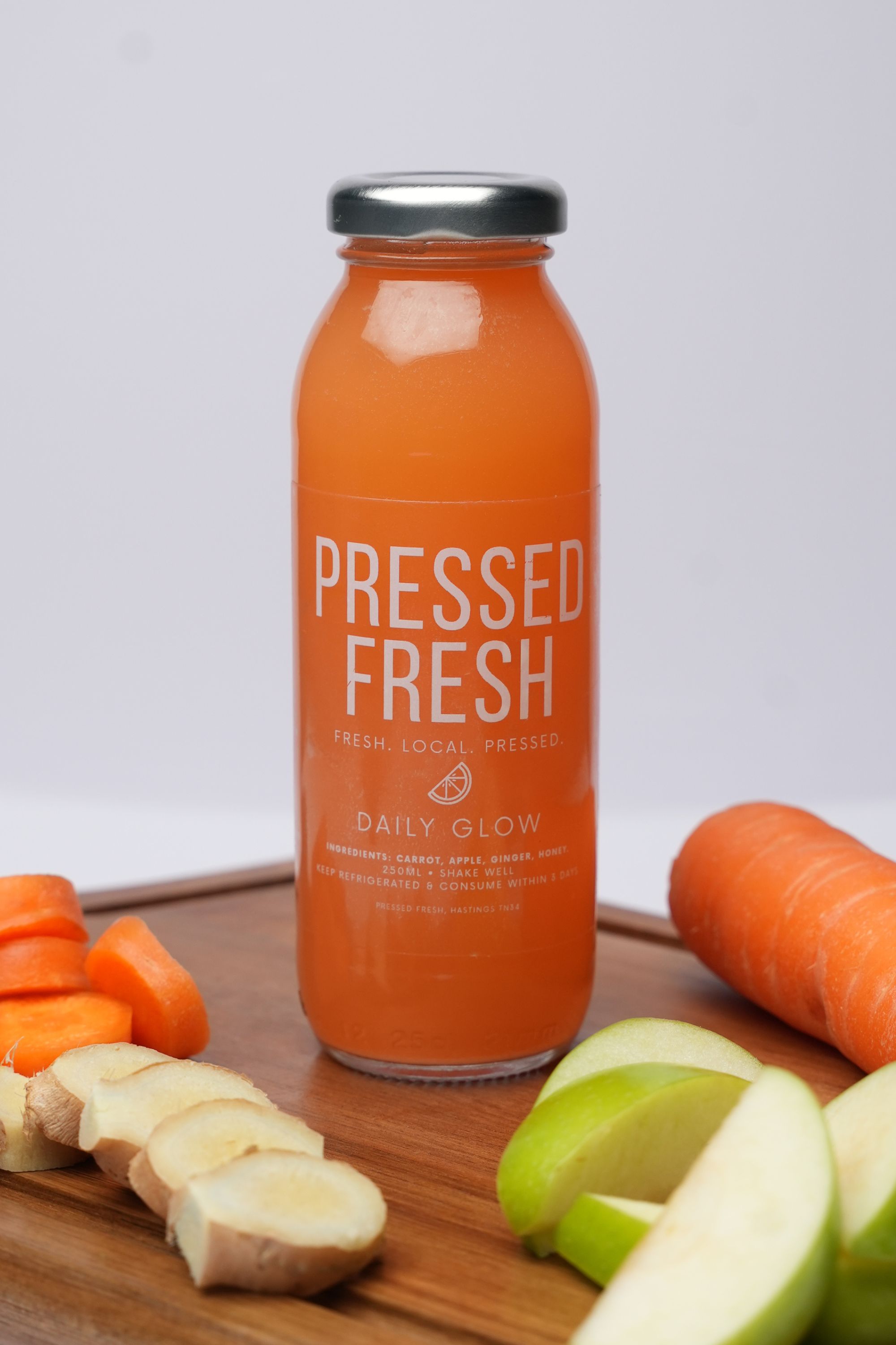 Made in small batches using real fruit and roots. Pressed fresh, bottled immediately and kept chilled - so everything tastes clean, vibrant and alive.
